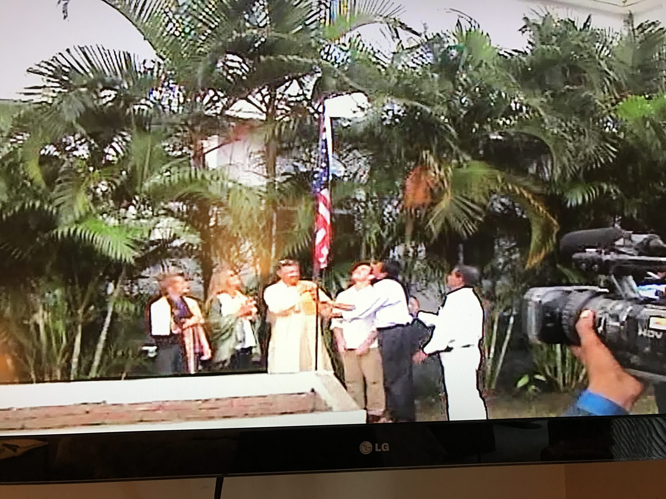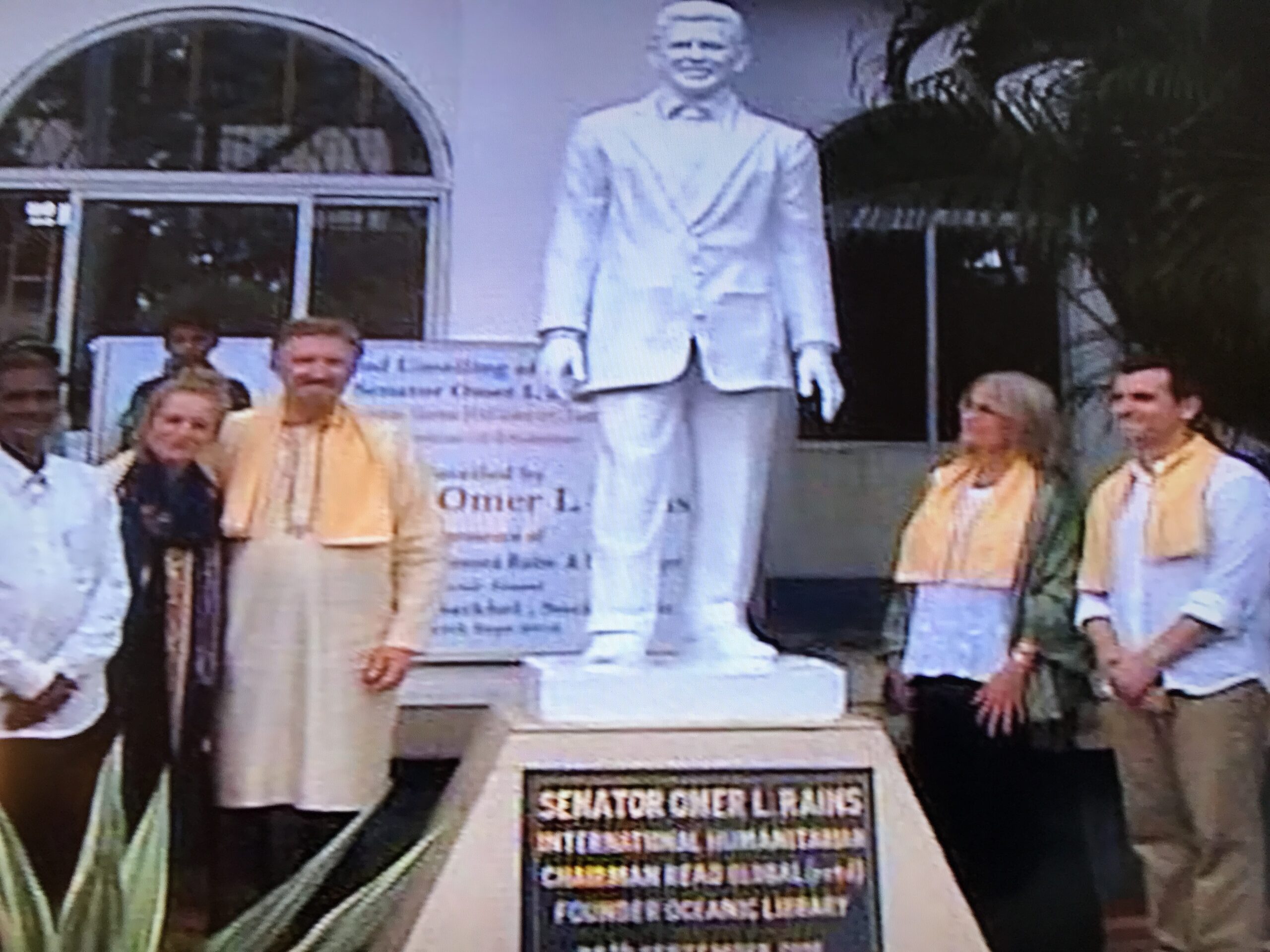 This document highlights the inauguration of the Oceanic Library. As Mr. Rains was recovering from a detached retina operation and could not fly, his daughter Jessica represented him in Ullon where she delivered inaugural remarks and cut the tape officially opening the Library. She is found in various photographs in the blue dress.